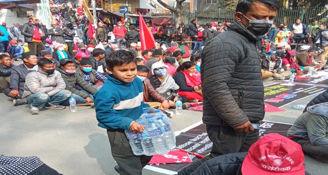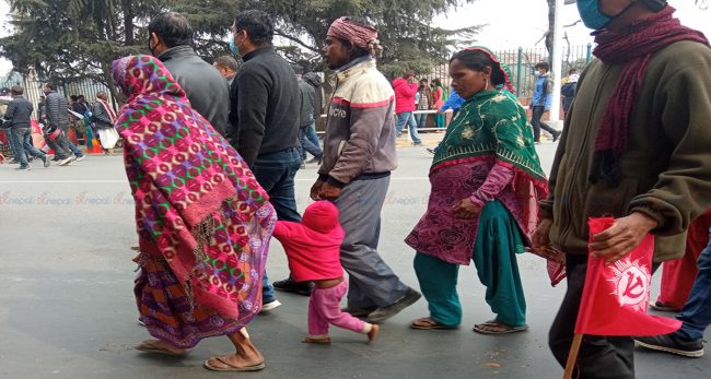 नेकपा (प्रचण्ड-नेपाल) समूहको शक्ति प्रदर्शन : कोही भोकै, कोही खाली खुट्टा