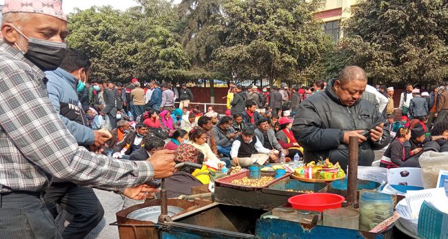 विरोध प्रदर्शन लेखेको कालो ब्यानर ओछ्याएर लस्करै बसेका महिला नेतृलाई अमृता थापाको भाषण भन्दा प्यारो बदाम लागिरहेको थियो। सूर्य अंकित झण्डा भूइँमा फालेर पानीका बोतल अगाडि राखेर बसेकी महिला हेर्दा छुट्याउन गाह्रो पथ्र्यो उनी व्यापारी हुन वा कार्यकर्ता।