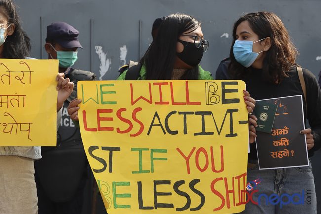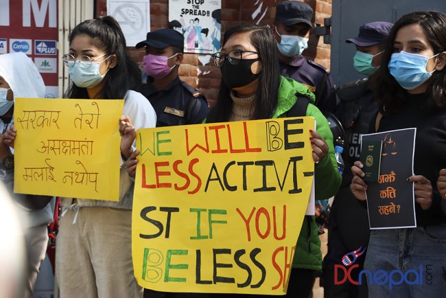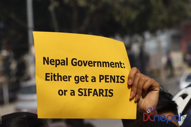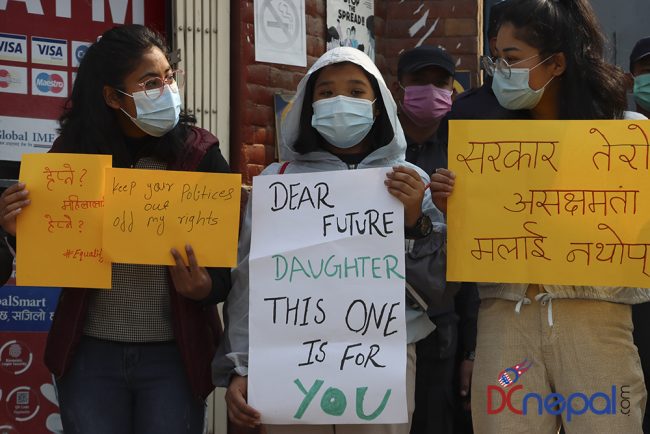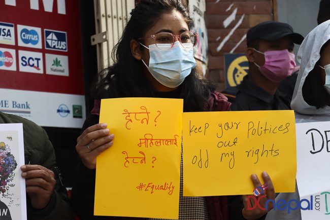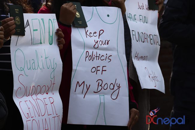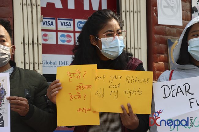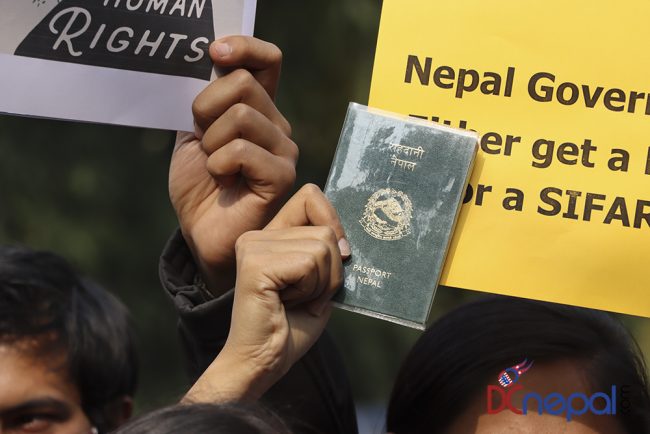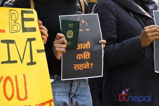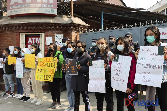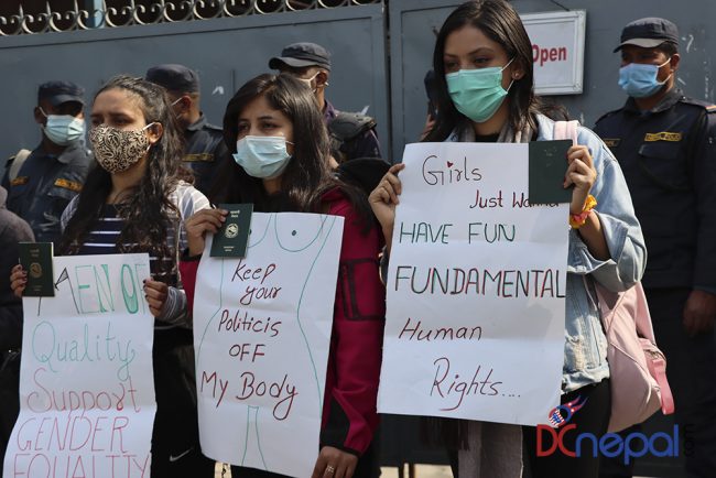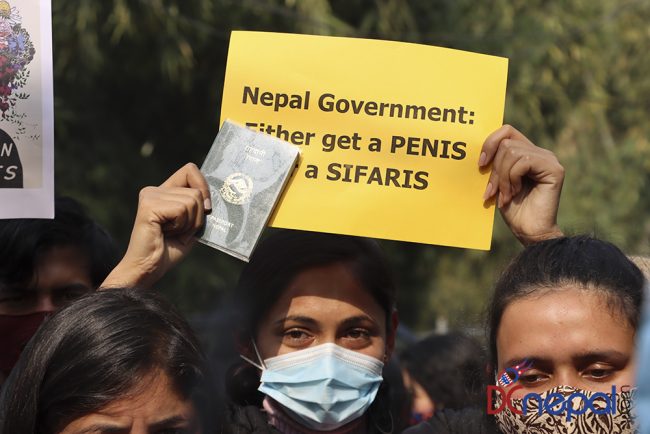 सरकारको अध्यागमन कार्यविधि संशोधन प्रस्ताव विरुद्ध महिलाहरूको पासपोर्ट प्रदर्शन (फोटो फिचर)