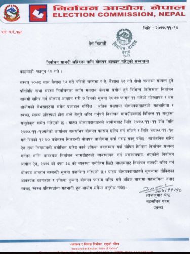 निर्वाचन आयोगले निर्वाचन सामग्री खरिदका लागि बोलपत्र आह्वान गर्दै