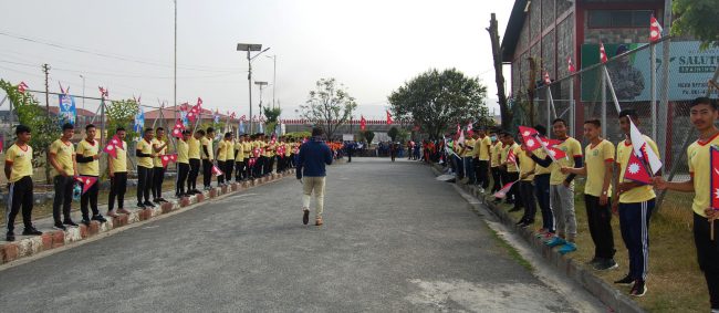 नेपाल कम्युनिष्ट पार्टी (नेकपा) को प्रदेशस्तरीय कार्यकर्ता भेलालाई सम्बोधनका लागि पोखरा आएका ओलीले सभागृहमा पार्टीको भेलालगत्तै दिउँसो फुटबल रङ्गशालाको अवलोकनमा पुगेका थिए । मुलुकको प्रमुख कार्यकारी रङ्गशाला आउने खबर पाएपछि उत्साहित खेलाडी, खेल पदाधिकारी तथा प्रशिक्षक उनको स्वागतमा प्रवेशद्वारमा राष्ट्रिय झन्डा फहराउँदै उपस्थित भइसकेका थिए । प्रधानमन्त्री ओली रङ्गशालामा आएपछि आफ्नो खेल पोशाकमा उपस्थित खेलाडी तथा प्रशिक्षकले हातमा लिएको राष्ट्रिय झन्डा फहराए र प्रधानमन्त्रीको भव्य स्वागत गरेका थिए । उनको स्वागतमा रङ्गशालामा बाजागाजाको व्यवस्था मिलाइएको थियो ।