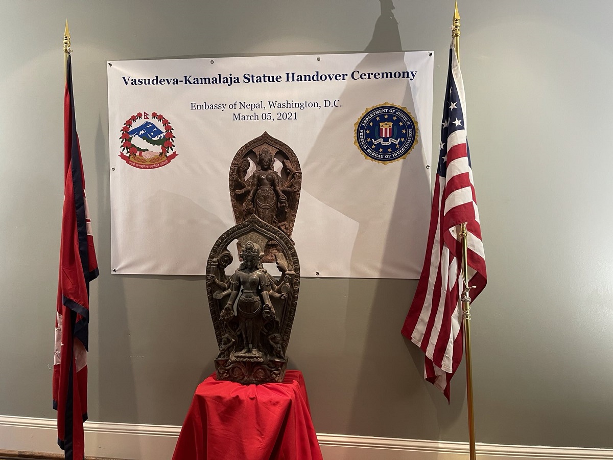 ललितपुरबाट चोरी भएर अमेरिकामा रहेको लक्ष्मी–नारायणको मूर्ति नेपाललाई हस्तान्तरण