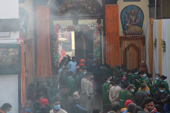 काठमाडौं । महाशिवरात्रिको अवसरशमा पवित्र पाशुपत क्षेत्रमा दर्शनार्थीहरुको भिड रहेको छ। आज विहान ४ बजे पशुपति मन्दिरका ४ वटै ढोका खोलिएपछि दर्शन गर्न आएका भक्तजनहरुले पूजा आजा गरिरहेका छन्।