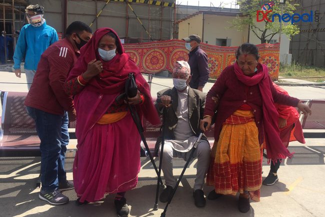 लौरो टेक्दै र ह्विलचियरमा अस्पताल आएकाहरु सन्तानको सहारामा हुन्थे। आफ्ना सन्तानले भनेबमोजिम खोप लगाइसकेपछि भने अस्पतालकै प्राङ्गणमा बनाइएको आराम गर्ने अस्थायी कोठाभित्र बसिराखेका वृद्धवृद्धाहरुलाई स्वयंसेविकाहरूले थप ऊर्जा दिइरहेका थिए।