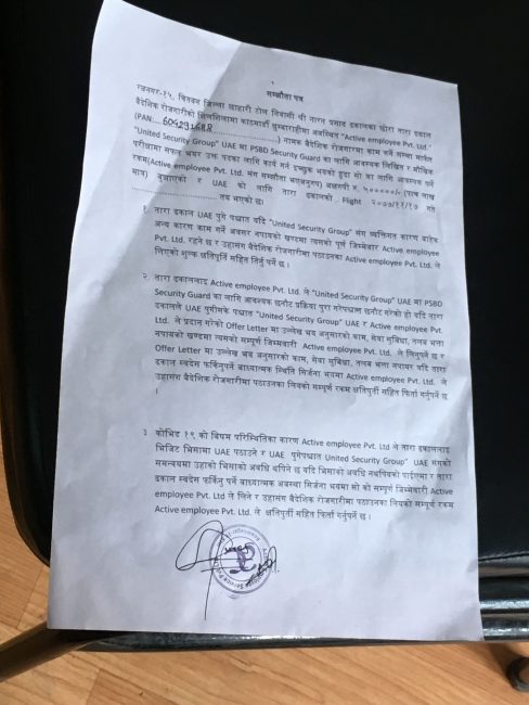 पीडित एक महिलाले भनिन्, ‘छ महिना पूरै भइसक्यो उहाँहरु गएको। कम्पनीले समयमा भात पनि दिँदैन रे। अझ मैले उता(दुबई) मेरो आफन्त हुनुहुन्छ, उहाँले मेरो श्रीमान्लाई पैसा पठाउने मैले चाहीँ यता(नेपाल) उसको श्रीमतीलाई पैसा दिने गरिराखेको छु। यता ८० हजार रुपैयाँ बुझाइसके, यताबाट खर्च गरेर पालिराखेका छौं। उता आफ्नो मान्छे भएर पो बाँचिराखेको छ नत्र त मरिसक्ने थिए।’