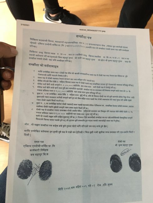 उनीहरुमध्ये दुई जनाले पाँच लाख ६७ हजार र एक जनाले नौ लाख खर्च गरेर दुबई उडेका पीडितहरुको भनाइ छ। पीडित महिला भन्छिन्, ‘सासुससुराले कति पैसा पठायो, हामीलाई चाहीँ केही भन्दैन, भन्छन्। फेरि टेन्सन हुन्छ उहाँहरुलाई भनेर मिडियामा नदेखिएको। विदेश जाँदा गरिएको सम्झौतापत्र पनि बिगारेर लेखेको छ। जस्तोः ‘दुबई देश जनाउनु पर्ने ठाउँमा दुबै भनेर जनाएको छ। अनि हाम्रो चाहीँ तीन पुस्ते नाम राखेको छ, उसको चाहीँ केही छैन्।’