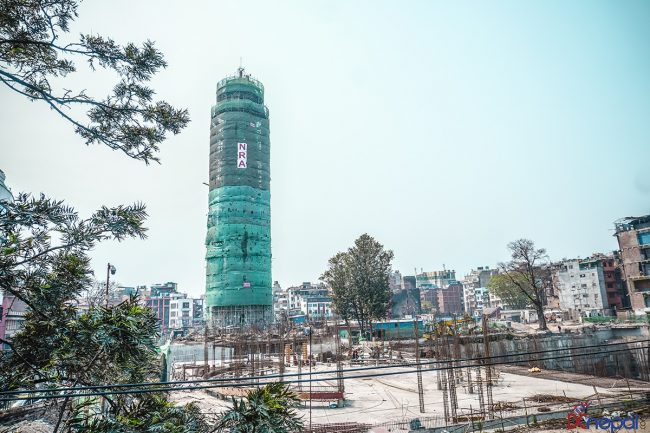काठमाडौं। काठमाडौंको सुन्धारामा निर्माणाधिन ऐतिहासिक धरहरा पुर्ननिर्माणको अन्तिम चरणमा छ। २२ तले धरहराको बाहिरी संरचनाको काम सकिएको अवस्थामा हाल अन्डरग्राउण्ड पार्किङ, खानेपानीको पाइप, टेलिफोन, विद्युतीय लिफ्ट बनाउने, गजुरको काम लगाएत, वाइरिङ र फिनिसिङको काम भइरहेको राष्ट्रिय पुर्ननिर्माण प्राधिकरणका प्राविधिक राजुमान मानान्धरले जानकारी दिए।