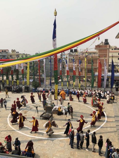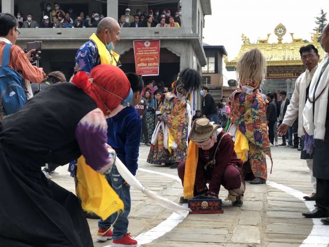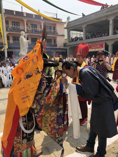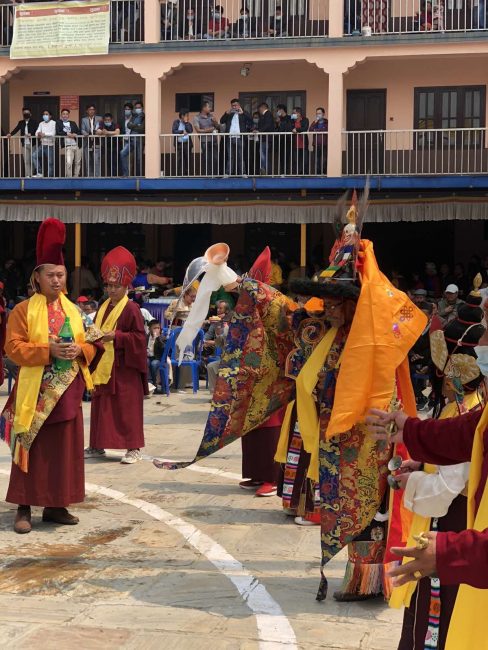 तिन्चुलीमा रहेको ह्याल्मो समाज सेवा केन्द्रको आँगनमा छेच्यु पूजा गरिएको थियो। यस गुम्बाबाट देवीदेवताबीच पदमसंम्भवाको पोशाकको भेषमा लामा गुरु नाच्ने गर्छन्। पूजा गर्ने क्रममा गुम्बाबाट देवीदेवताबीच पदमसंम्भवाको पोशाकको भेषमा लामा गुरु नाच्दै निस्केका थिए। लामा गुरुले शिरमा कलात्मक मयुरप्वाखे पवित्र शिरपोष, हातमा तन्त्रमन्त्र कुदिँएका भयंकर बज्र र घण्टी पहिरिएका थिए। ह्योल्मो धार्मिक पोशाकमा चिटिक्क देखिएका बौद्ध धर्मगुरु रिन्पोछे (पदमसंम्भवा) सँगै रिन्पोछेकै स्वरुप र देवीदेवताको सामुहिक लस्कर निस्किएको थियो।
