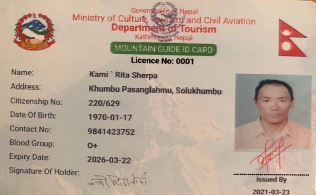 पर्वतीय पथप्रदर्शकको पहिलो अनुमतिपत्र कामिरिता शेर्पालाई