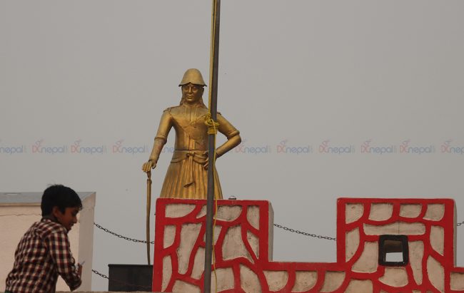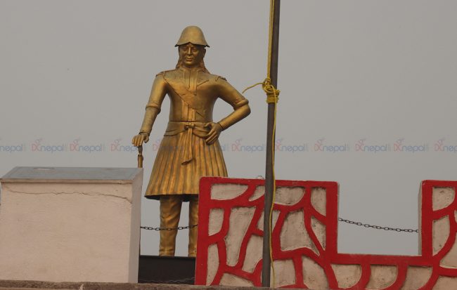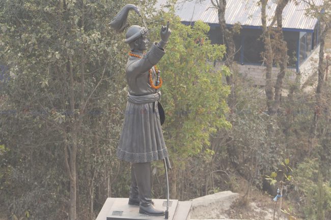 देवीस्थान मन्दिरको गेटमै पृथ्वी नारायण शाहाको शालिक छ। राष्ट्रनिर्माता शाहको तस्वीरभएको ठाउँ, चुच्चेढुङ्गा र बलभद्रको शालिक भएका ठाउँहरु पछिल्ला केहीदिनदेखि तुँवालोले ढाकेको पाइन्छ।