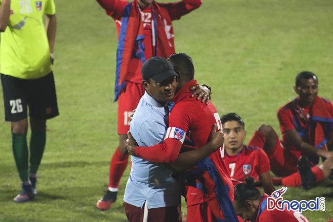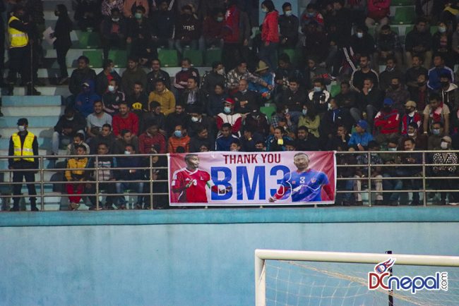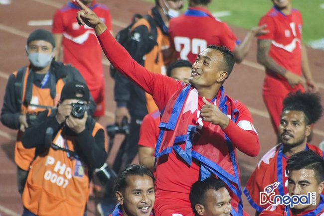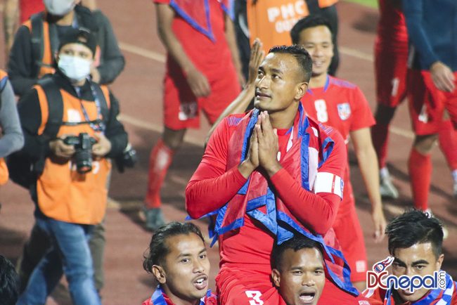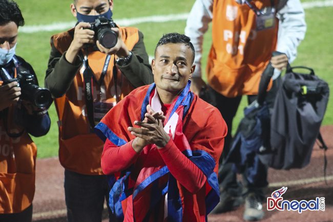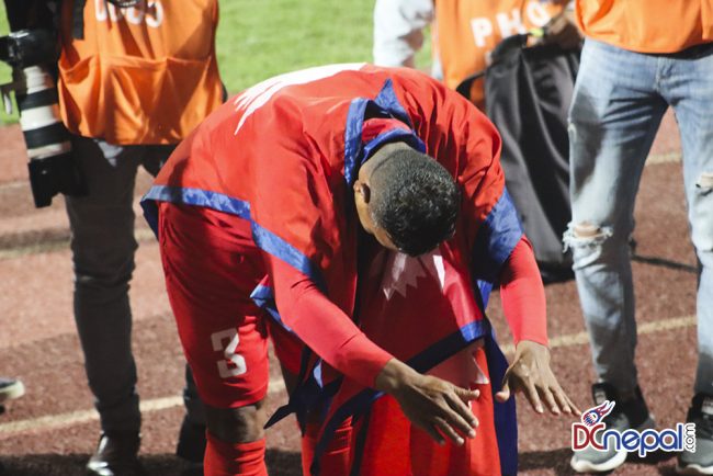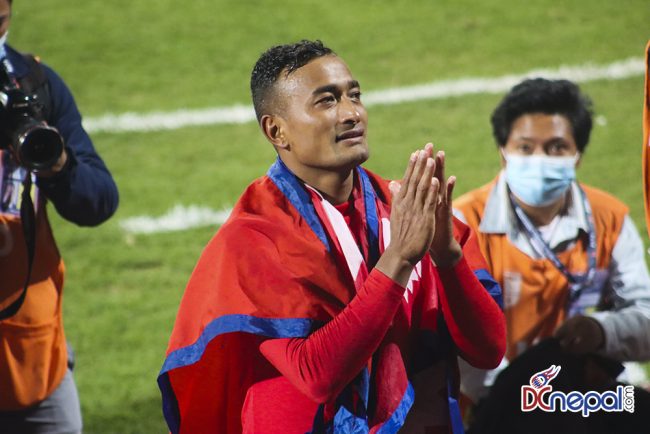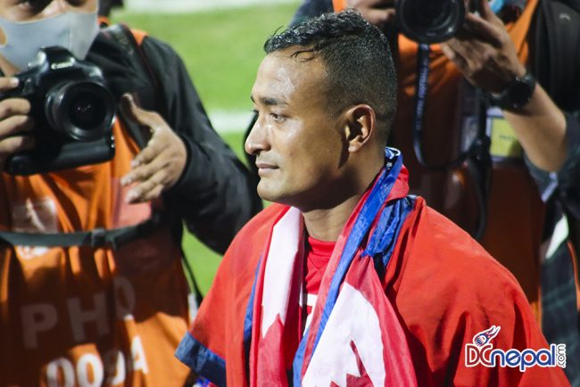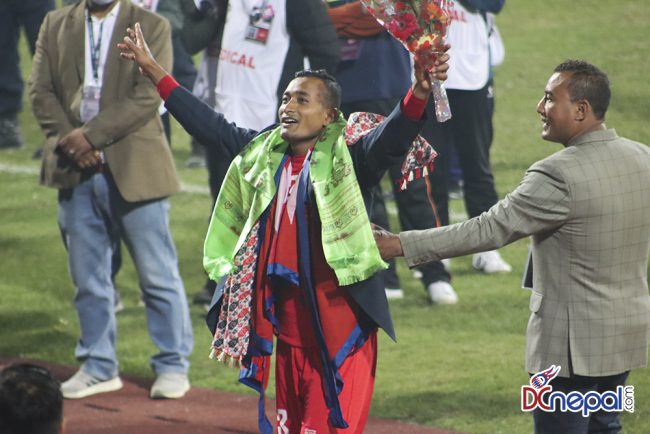 काठमाडौं । नेपाली राष्ट्रिय फुटबल टोलीका सफल कप्तान विराज महर्जनले अन्तर्राष्ट्रिय फुटबलबाट सन्यास लिएका छन् । दशरथ रंगशालामा सोमबार भएको थ्री नेसन्स कपको फाइनलपछि विराजले अन्तर्राष्ट्रिय फुटबलबाट सन्न्यास लिएका हुन् । अन्तिम खेलमा उपाधि जित्दै उनी अन्तर्राष्ट्रिय खेलबाट बिदा भएका हुन् ।
