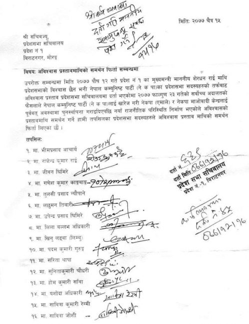 मुख्यमन्त्री राईको पद जोगियो, नेपाल पक्षका १६ सांसदले गरे अविश्वास प्रस्ताव फिर्ता