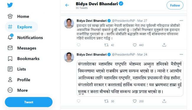 — Bidya Devi Bhandari (@PresidentofNP) March 24, 2021