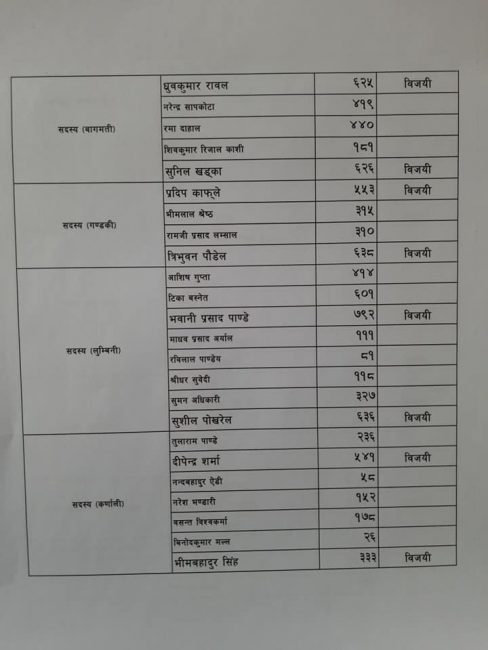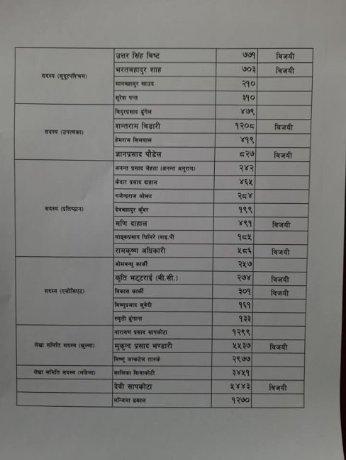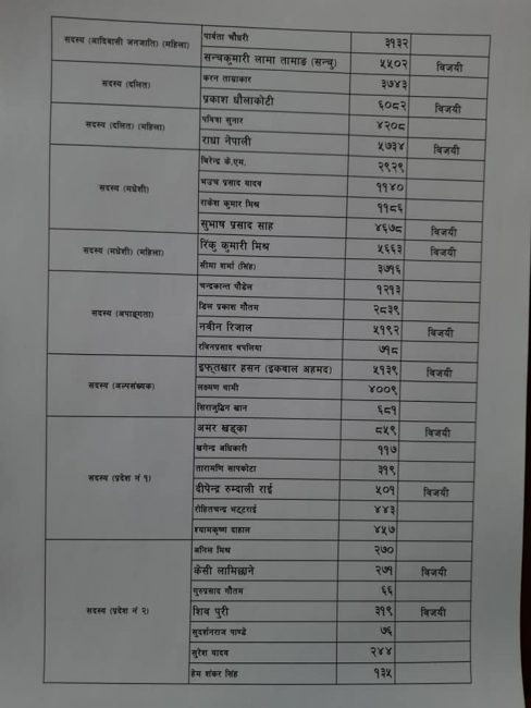 सम्पूर्ण उम्मेदवारले पाएको मत परिणाम यसप्रकार छः