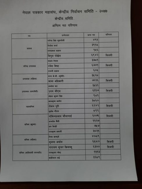 पत्रकार महासंघको चुनावमा कसले कति मत पाए ? (सूचीसहित)