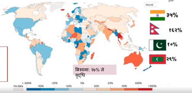 भारत र नेपालमा नै कोरोनाको पोजेटिभिटी बढ्दै गएको डा श्रेष्ठले जानकारी दिइन। उनका अनुसार गत माघ, फागुन र चैतको तुलनामा बैशाखमा कोरोनाको संक्रमणदर बढ्दो छ।