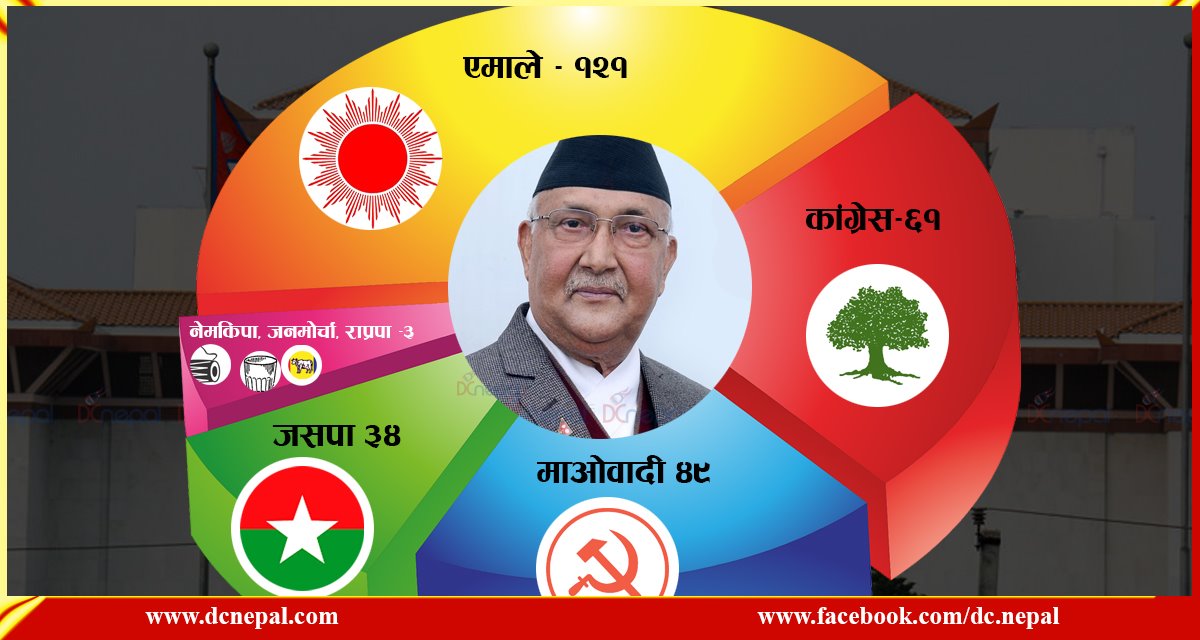 तर, कुल संख्यामा उनीहरुको पनि गणना भने हुन्छ। त्यसैले हाल प्रतिनिधिसभा २७१ सदस्यीय कायम छ। सरकारलाई बहुमतका लागि १३६ सिट आवश्यक पर्छ। हाल एमालेसँग १२१ सिट छ।