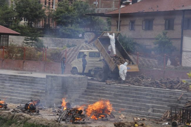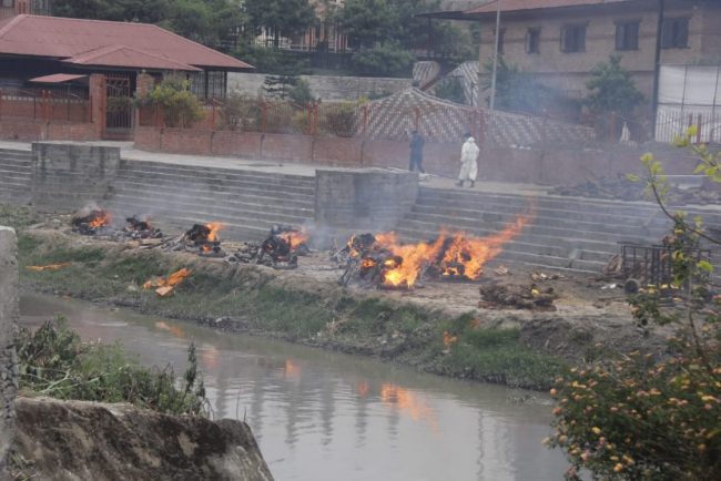 कोरोनाबाट मृत्यु हुनेको संख्या बृद्धि हुन् थालेपछि पशुपति आर्यघाट बागमती नदी किनारमै शव जलाउन थालिएको छ। सोमबार पहिलो पटक बागमती किनारामा शव जलाइयो। त्यसले मंगलबार पनि निरन्तरता पाएको छ। सोमबार ३४ वटा शव जलाइएको थियो भने मंगलबार दिउँसो ४ बजेसम्म २० वटा शव जलाइएको छ।