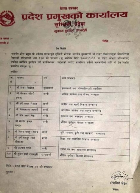 मुख्यमन्त्री पोखरेलले तेस्रोपटक विस्तार गरे मन्त्रिपरिषद्