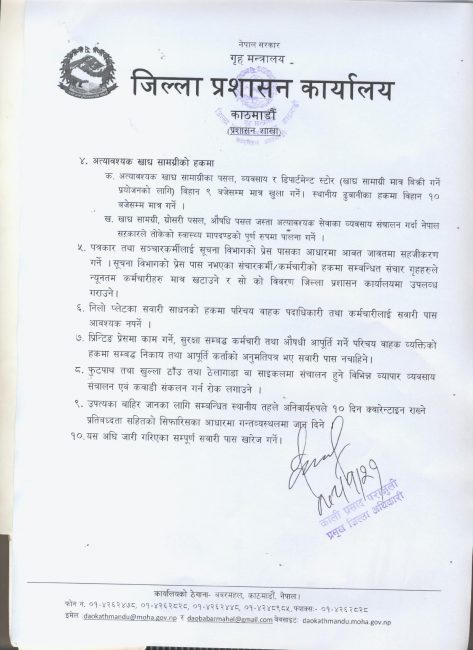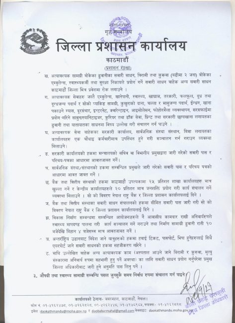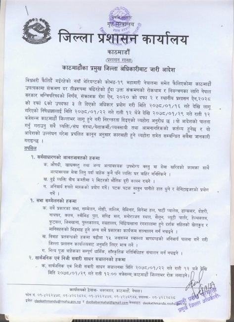 उपत्यकाको निषेधाज्ञा वैशाख २९ सम्म थप