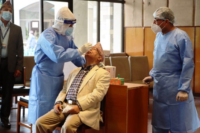 विहान १० बजेबाट सुरू गरीएकाे स्वाब संकलन कार्य जारी रहेकाे छ। अहिलेसम्म नेकपा एमालेका नेता माधवकुमार नेपाल, सुबास नेम्वाङ, माओवादी केन्द्रका देव गुरूङ, गिरीराजमणि पाेखरेल, शक्ति बस्नेतलगायतका सांसदहरूले स्वाब दिएका छन्।