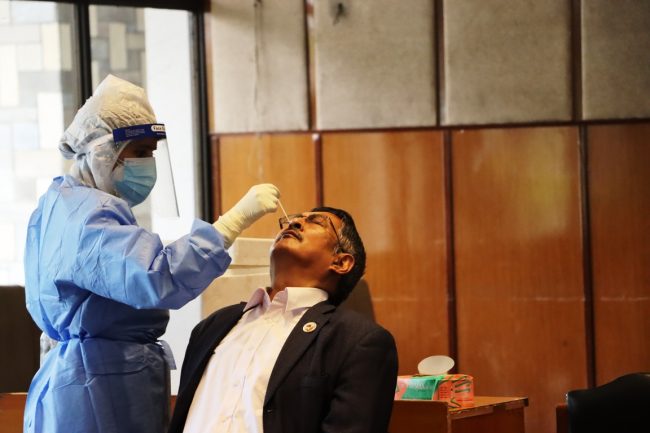 काेराेना परीक्षणका लागि सांसदहरूकाे स्वाब संकलन गर्दा देखिएका केही फरक दृष्य (फाेटाेफिचर)
