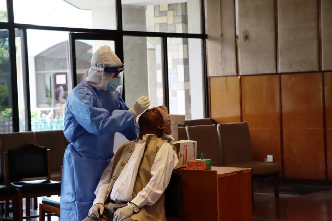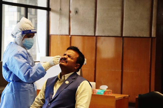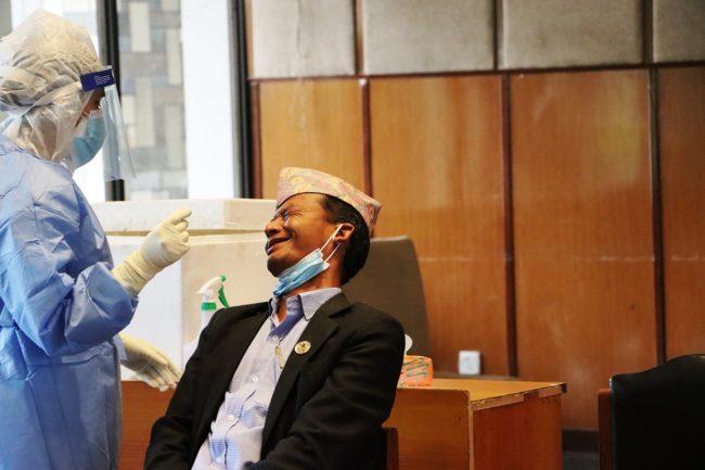 काेराेना परीक्षणका लागि सांसदहरूकाे स्वाब संकलन गर्दा देखिएका केही फरक दृष्य (फाेटाेफिचर)