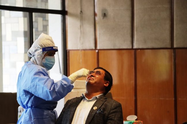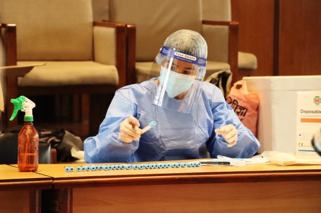 काठमाडौं । बैशाख २७ गते हुने विशेष अधिवेशनको लागि सांसदहरुको कोरोना परीक्षण गर्न स्वाब संकलन गरिएकाे छ। बानेश्वर स्थित ल्हाेत्सेहलमा सांसद र कर्मचारीकाे काेराेना परीक्षणका लागि स्वाब संकलन गरिएकाे हाे।