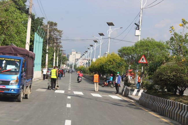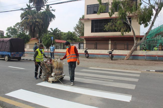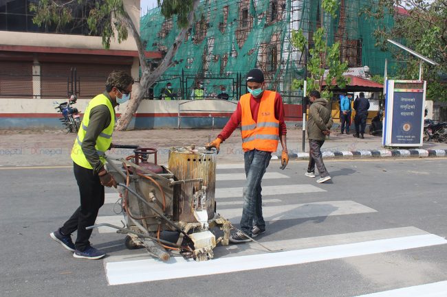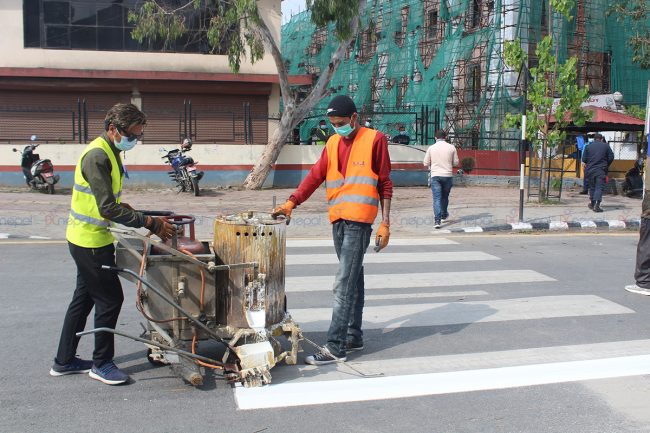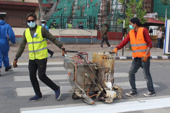 सडक खाली हुँदा सडक विभावले राजधानीका सडकमा रोड मार्किङको काम गरिरहेको छ। अहिले यतिबेला राजधानीका सडक पेटीमा रङ लगाउने काम धमाधम भइरहेको छ।