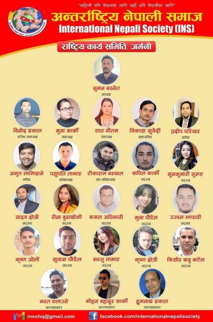 जर्मनी । जर्मनीमा अन्तर्राष्ट्रिय नेपाली समाजको राष्ट्रिय कार्यसमिति गठन भएको छ । बुधबार भएको एक भर्चुअल कार्यक्रममार्फत विगत ८ वर्षदेखि जर्मनीमा बस्दै आएका सुमन बस्नेतको नेतृत्वमा कार्यसमिति गठन भएको हो । समितिको वरिष्ठ उपाध्यक्षमा विनोद ढकाल र उपाध्यक्षमा मुना कार्की र राधा गौतम चयन भएका छन ।