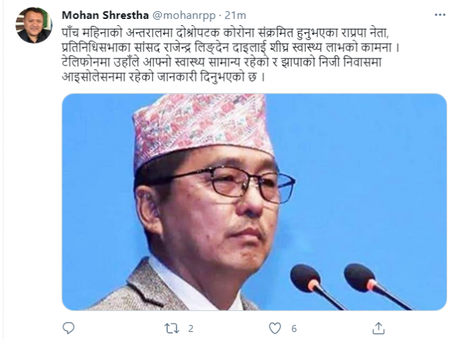 राप्रपा सांसद लिङ्देनलाई दोस्रोपटक कोरोना संक्रमण