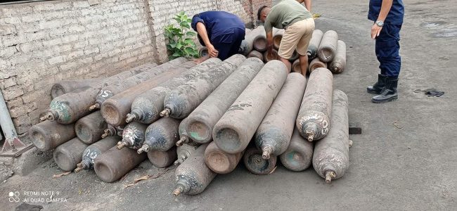 प्रहरीद्वारा पाँच हजार अक्सिजन सिलिण्डर सङ्कलन गरी वितरण