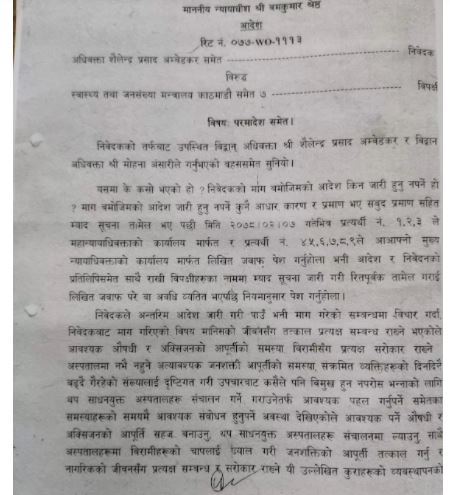 सरकारका नाममा सर्वोच्चको आदेशः उपचारबाट विमुख हुने स्थिति नहोस्