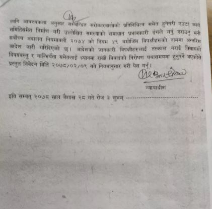 अधिवक्ता शैलेन्द्रप्रसाद अम्बेडकर लगातयले दायर गरेको रिटमाथि न्यायाधीश बमकुमार श्रेष्ठको एकल इजसलासले ‘आवश्यक पर्ने औषधी र अक्सिजनको आपूर्ति सहज बनाउनु, थप साधनयुक्त अस्पतालहरु सञ्चालमा ल्याउनु साथै अस्पतालहरुमा बिरामीहरुको चापलाई ख्याल गरी जनशक्तिको आपूर्ति तत्काल गर्न अन्तरिम आदेश दिएको हो। अक्सिजन तथा आईसीयूको अभावमा कोरोना संक्रमितको मृत्यु भइरहेको बेला सर्वोच्चले सरकारका नाममा यो आदेश दिएको हो।