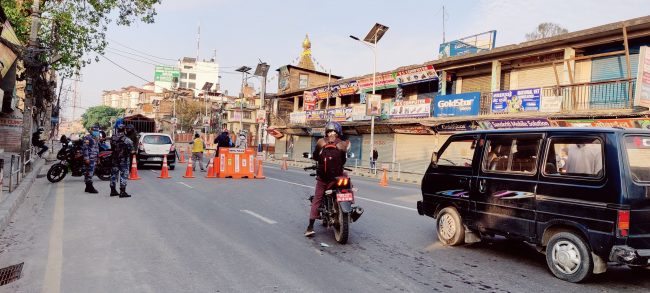 निषेधाज्ञा कडा रुपमा लागू गराउन सडकमा सुरक्षाकर्मी परिचालन गरिएको छ। एकाबिहानै एक चक्कर लाउँदा चक्रपथ प्राय: सुनसान थियो। चक्रपथ बाहिरका शहर, गाउँ र बस्तीबाट शहर छिर्ने प्रमुख स्थानहरुमा सुरक्षाकर्मीको उपस्थिति बाक्लै थियो।