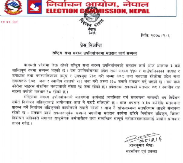 राष्ट्रिय सभा उपनिर्वाचनः ३३८ जनाले मतदान गरे, मत गणना शुरु