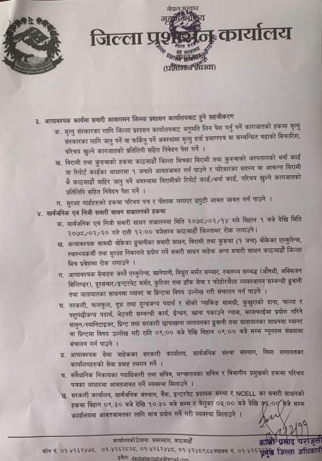 काठमाडौं उपत्यकामा निषेधाज्ञा जेठ २० गतेसम्म थपियो, अझै कडाई गरिने