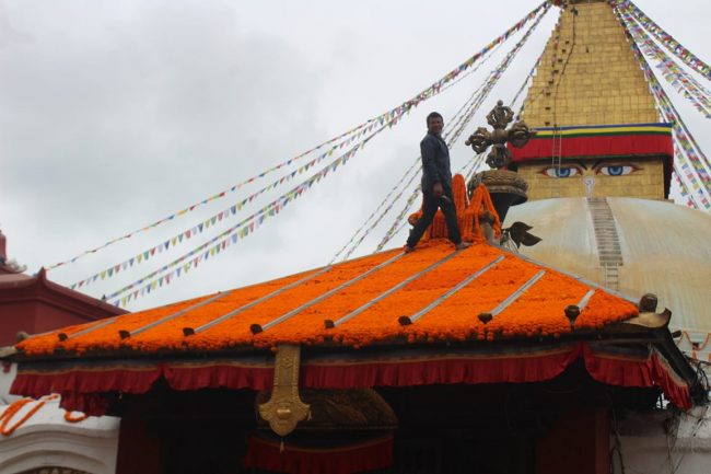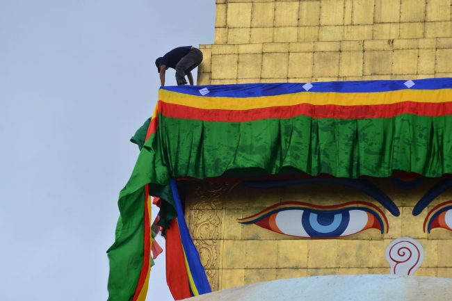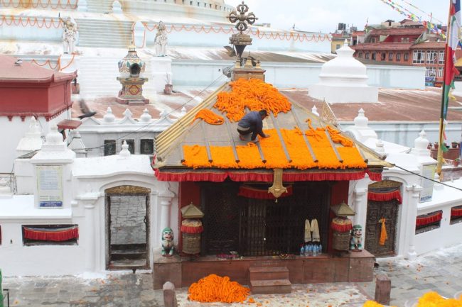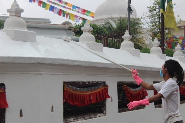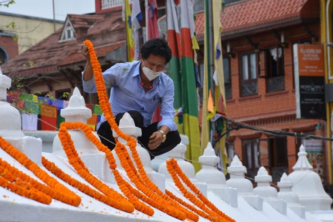 बुद्ध जयन्तीका अवसरमा बुधबार काठमाडौंस्थित स्वयम्भू बौद्धनाथ स्तुपालाई रंगरोगन गरिएको छ। ध्वजापतका र फुलले सजाइएको छ। तर कोरोना महामारीका कारण बुधबार बौद्धनाथ भने सुनसान थियो। देश हाल कोरोना महामारीको गम्भीर चपेटामा परेका कारण निषेधाज्ञा लगाइएको छ भने धार्मिक अनुष्ठानहरुमा पनि रोक लगाइएको छ। जसका कारण स्तुपा सुनसान भएको हो।