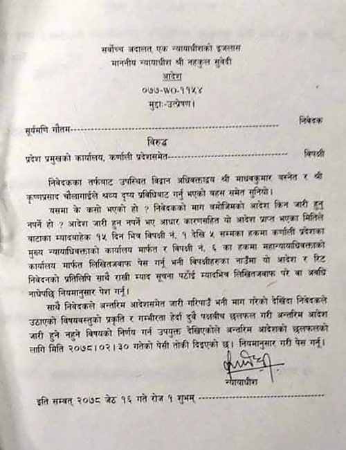 फौजदारी मुद्दामा दोषी प्रकरणः कर्णालीका मन्त्री थापासँग सर्वोच्चले माग्यो लिखित जवाफ