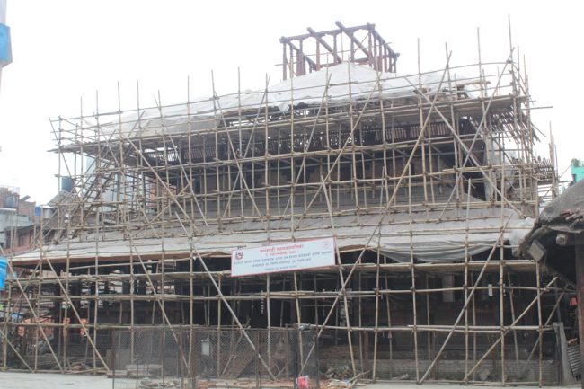 २०७२ सालको आम विनाशकारी भूकम्पबाट क्षतिग्रस्त अधिकांश सम्पदाको काम पूरा भइसकेको छ। धरहरा ठडिएको छ। रानीपोखरीको पुननिर्माणको काम पूरा भएको छ। अहिले काष्ठमण्डपलगायत सम्पदा पुननिर्माणको काम भने जारी छ।