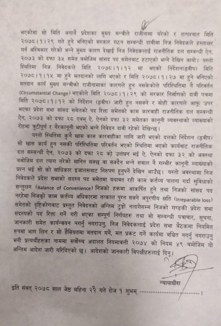 जनमोर्चा प्रदेशसभा सदस्यको पदबहाली गर्न सर्वोच्चको अन्तरिम आदेश
