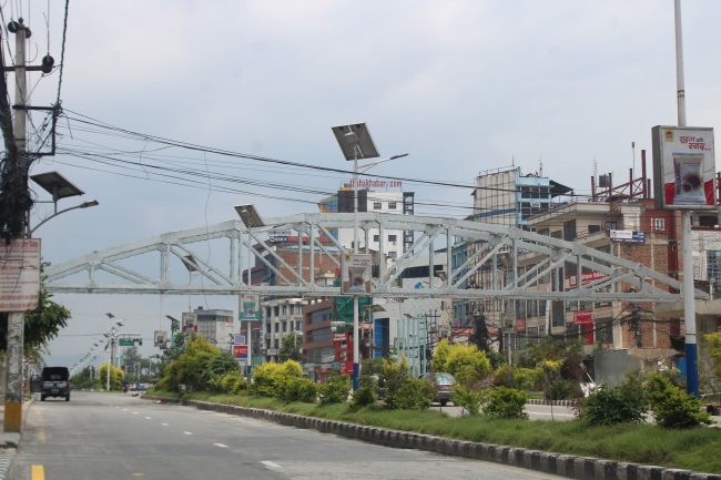 काठमाडौको सबैभन्दा व्यस्त मानिने नयाँ बानेश्वरमा निषेधाज्ञाको समयमा आकाशे पुलको निर्माण कार्य धमाधम भइरहेको छ। सडक विभागले आज त्यहाँ फलामबाट निर्माण भएको ब्रिज बनाउन लागेको हो। पैदाययात्रीलाई नयाँ बानेश्वरमा बाटो काट्न धेरै समस्या हुने गरेको थियो। यो पुल निर्माणसँगै बाटो काट्ने समस्याको समाधान हुनेछ।