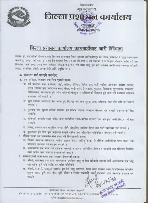 केही खुकुलो बनाएर उपत्यकामा एक हप्ता निषेधाज्ञा थपियाे