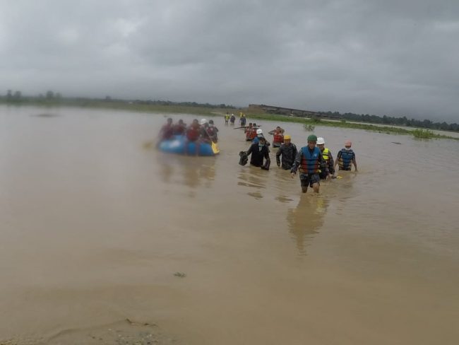 १९ घण्टादेखि राप्ती नदीको बाढीमा फसेकाहरुको उद्धार