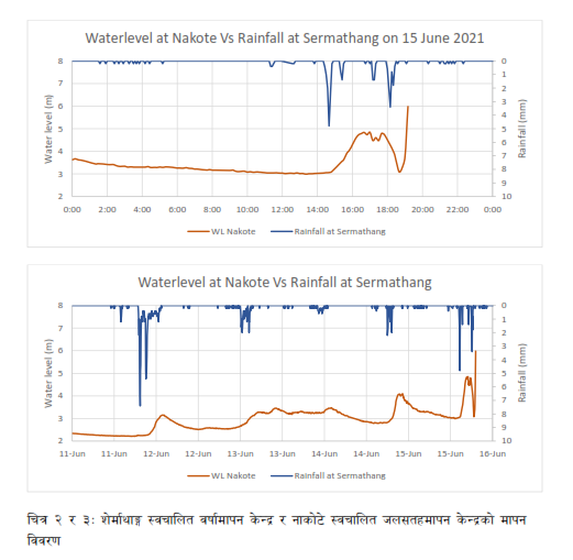 पहिरो गरेको समयमा केही समय मेलम्ची नदीमा पानीको बहाब घटेकोसमेत विभागले जनाएको छ। तर, ड्याम फुटेपछि भने बाढी आएको बताएको छ। सोही समयमा भारी वर्षा भएकाले पनि बाढी झन ठूलो भएको विभागले जनाएको छ। विभागले दिएको जानकारी अनुसार यदि नदीको वहाब कम भएको समयमा सही सूचना पाउन सकिएको भए मानवीय क्षति कम हुन सक्ने देखिएको छ।