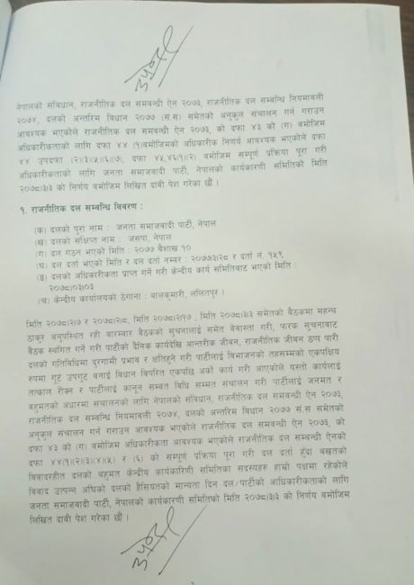 जसपा विवादः उपेन्द्र समूहद्वारा पार्टी वैधानिकता दावी