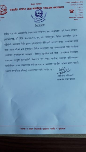 अन्तर्राष्ट्रिय उडानमा चर्को भाडाबारे छानविन गर्न समिति गठन