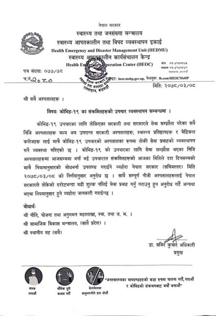 निजी अस्पतालमा कोरोना उपचारको व्यवस्थापन नगरिने