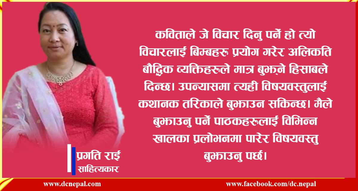 साहित्यकार बन्न उद्देश्य प्रष्ट हुनुपर्छ : प्रगति राई