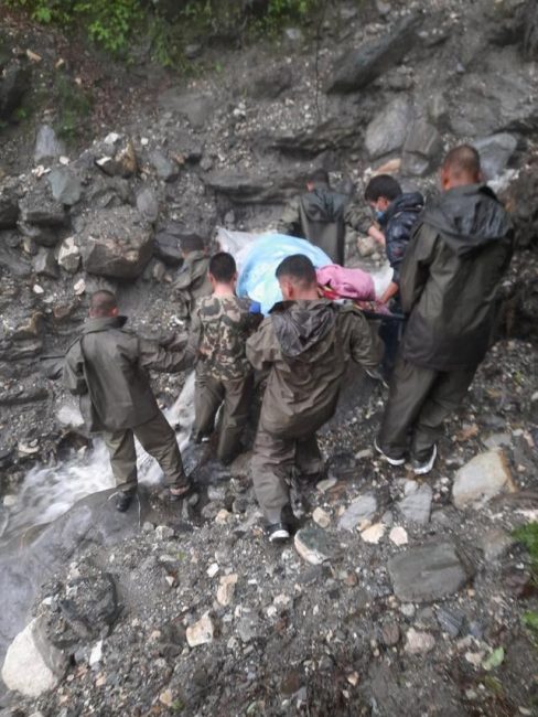 गर्भवती महिलाको सेनाले गर्यो उद्धार, स्ट्रेचरमा बोकेर सडकसम्म ल्याइयो